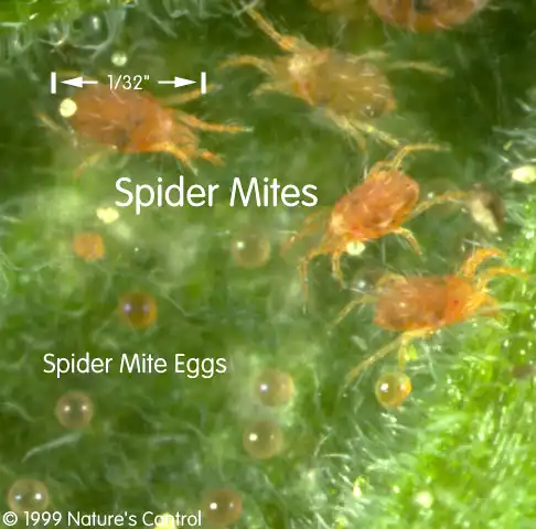 Two distinctive forms of glasshouse spider mite exists : yellow spider mites and red spider mites, closely related biologies and producing the same damages.